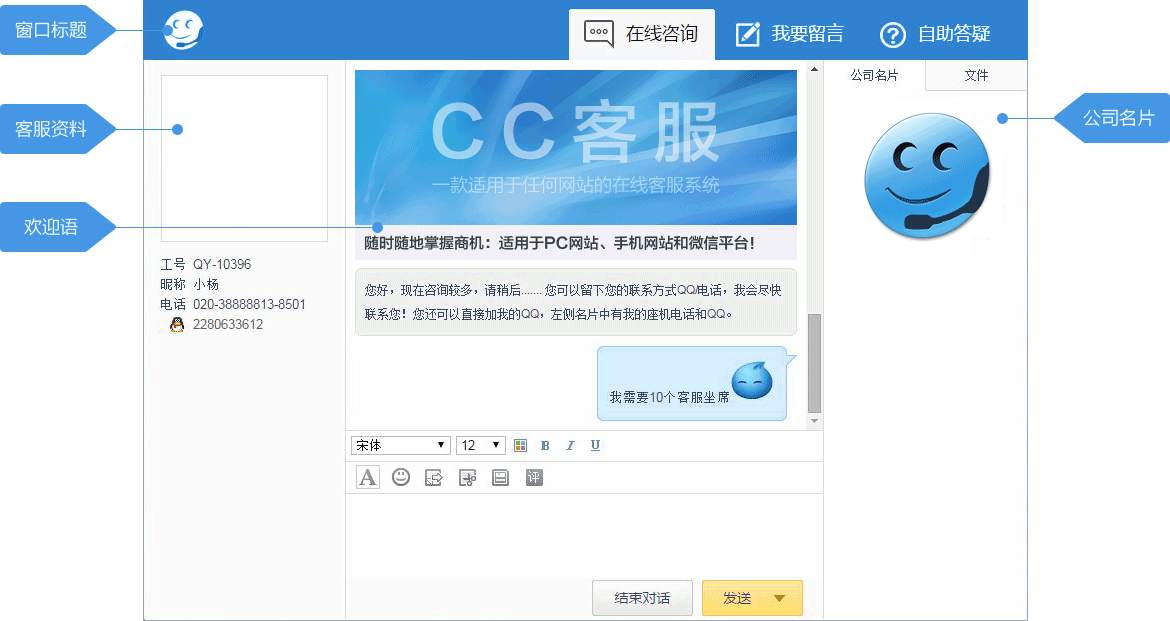 集成QQ、旺旺、Skype等,覆盖主流沟通渠道